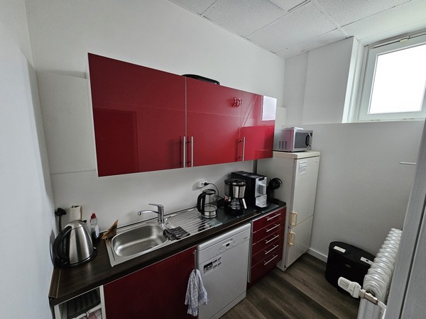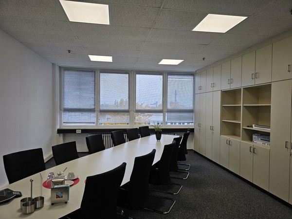 Empfang, vier Büros, ein großer Besprechungsraum, Serverraum, getrennte D-/H-WC, Küche.
