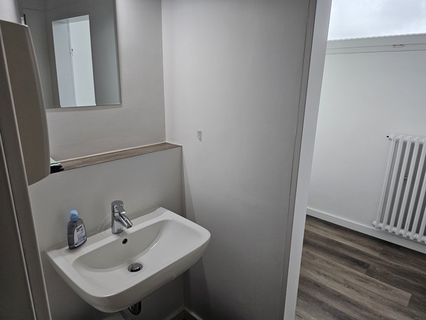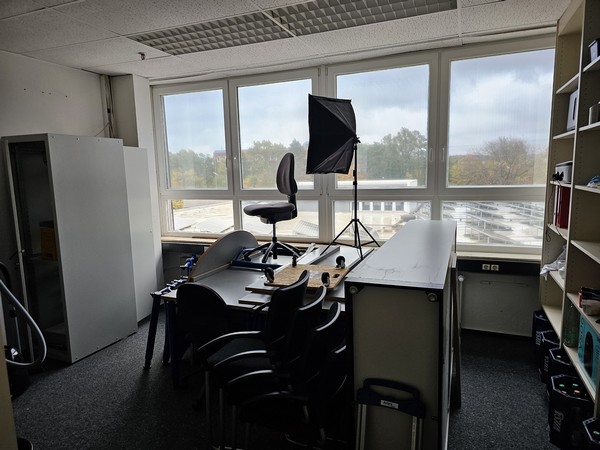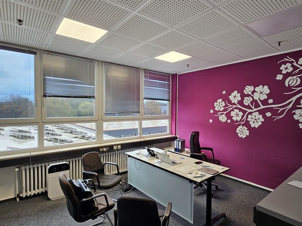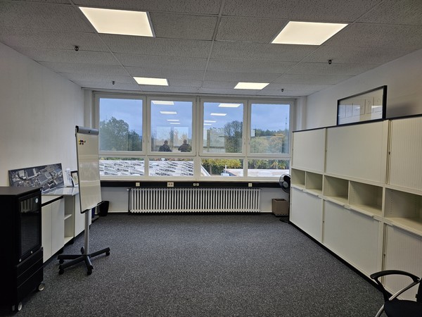 Boden Nadelfilz, Wände weiß, großenteils Leichtbauwände.