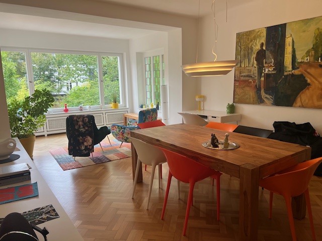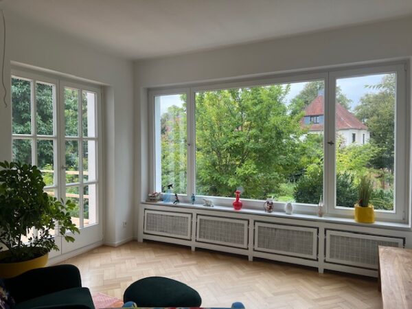 Dieses außergewöhnliche Haus vereint klassischen Charme mit modernem Wohnkomfort – ein wahres Schmuckstück in begehrter Lage. Schon auf den ersten Blick begeistert die Architektur mit ihren stilvollen Sprossenfenstern, den großzügigen Fensterfronten und dem edlen Parkett. Der Blick in den liebevoll angelegten, fast märchenhaft wirkenden Garten, eingebettet in altem Baumbestand und kaum einsehbar, vermittelt Ruhe, Geborgenheit und Exklusivität.