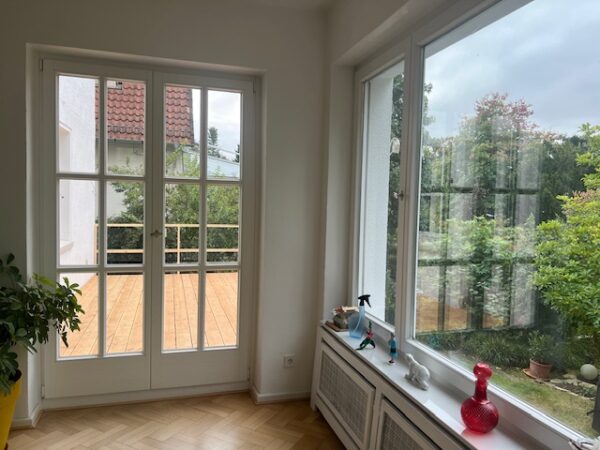 Erneuerung der Fenster (Holzsprossenfenster vom Tischler), teilweise Erhalt von Originalfenstern unter energetischer Erneuerung,