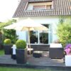 Der wunderschöne Garten ist pflegeleicht und uneinsehbar und verfügt über zwei Holzterrassen (Süd- und Nordausrichtung, jeweils mit Markise).