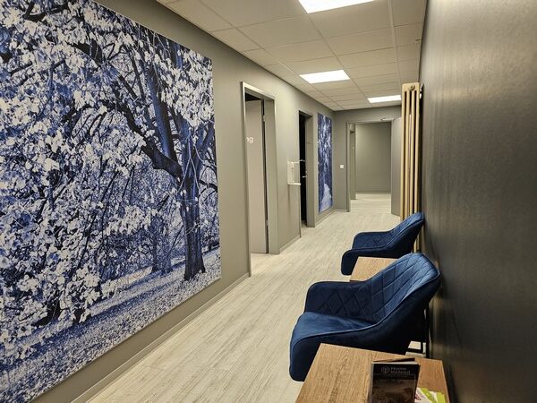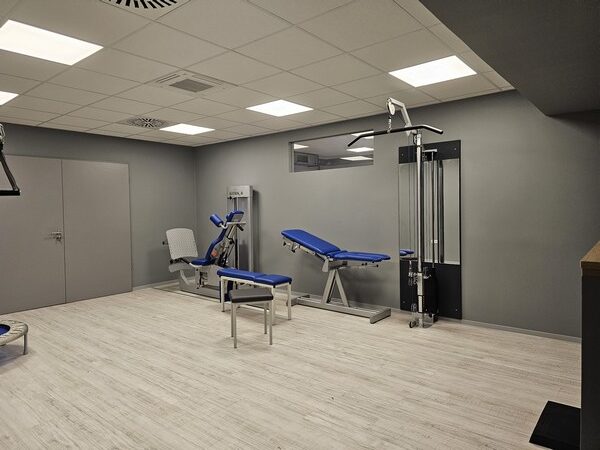 Große Trainingsfläche, Therapieräume, Umkleiden, Sauna, Dusche und Nebenräume.