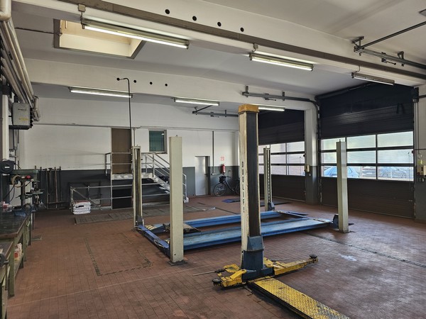 Büroflächen, daran anschließend: Werkstatt, ca. 207 m², mit drei Hebebühnen und eine Waschhalle.