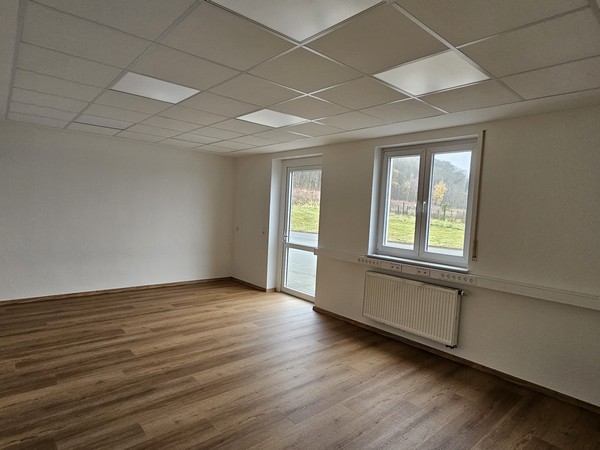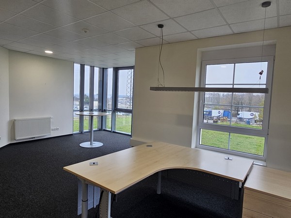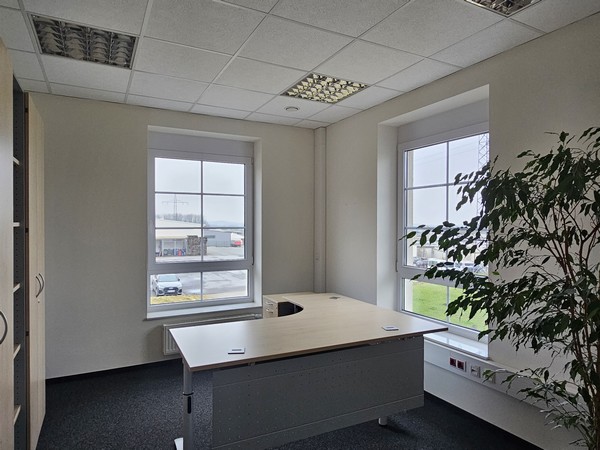 Bürogebäude: Repräsentatives Office mit zwei Vollgeschossen und einem Dachgeschoss. Raumaufteilung Erdgeschoss: Großzügiges Entree als Warte- und Empfangsbereich, vier geräumige Büros (s. Grundriss, das Großraumbüro ist aktuell in zwei Räume geteilt), getrennte WC’s, Technikraum, Treppenhaus. Raumaufteilung Obergeschoss: Vier/fünf Büros (s. Grundriss, die Wand zum Sekretariat ist nicht vorhanden), Flur, Teeküche, getrennte WC’s. Dachgeschoss: Konferenz-/Veranstaltungsraum, Archiv, Treppenhaus. Böden: Nadelvilz, Kunststofffenster- und türen grau, EG und OG: dezentrale Lüftung, Klimaanlage im Dachgeschoss
