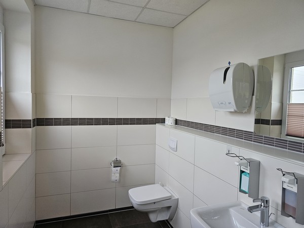 Waschanlage, kleines, überdachtes Außenlager, Büro, Aufenthalt, Umkleiden, Duschen, gedämmte Dachpaneele.
