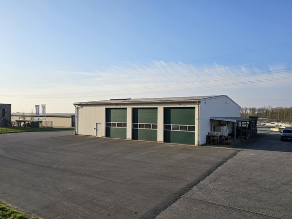 Zum Verkauf stehen jeweils ein Büro- und ein Hallengebäude auf einem großen Grundstück.