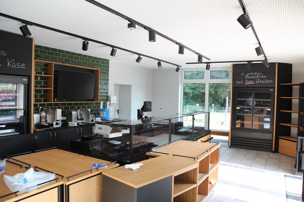 2021 Anbau mit Verkauf, Gastro-/Küchenbereich, Flur, Büro, 2 WC’s.